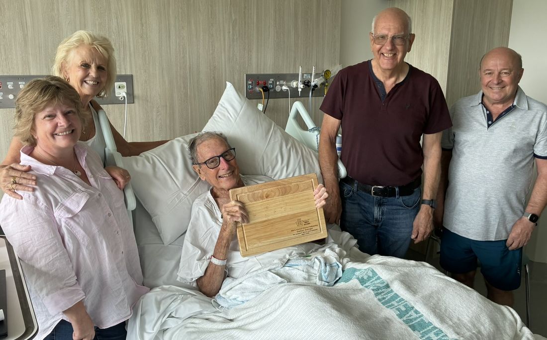 At our last Northern Beaches committee meeting we resolved to recognise Graham’s significant and continued support that has been truly above and beyond that of most of us. So yesterday a cadre of members visited Graham at his hospital bed and presented him a District Fellowship award to formally recognise his outstanding contributions to the Organisation.